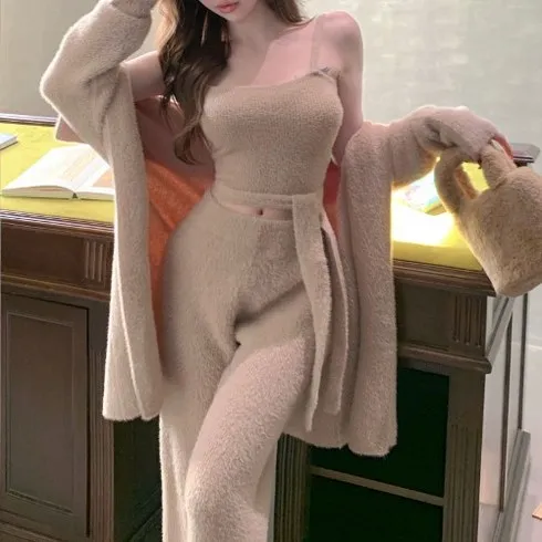 히또리 C0322 앙고라 니트 나시 + 가디건 + 팬츠 셋업 (3pset)
