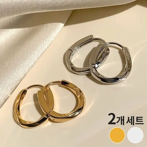 [2p] 고급스런 원터치 골드 실버 고급 링 귀걸이