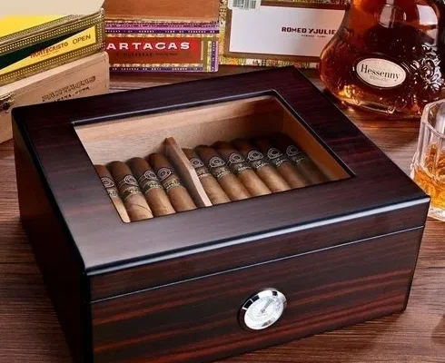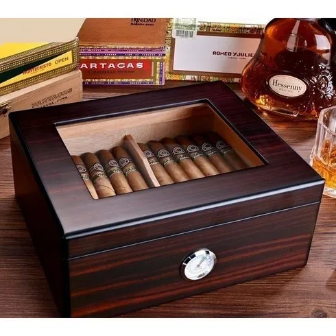 시가 습도조절 보관박스 고급 원목 케이스 쿠바시가 담배 보관함 우드 빈티지, 베이직 56개