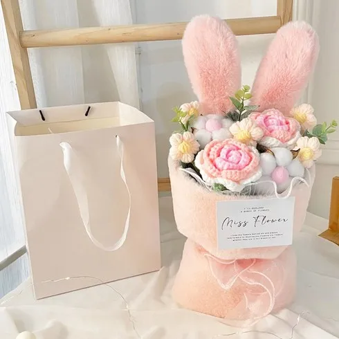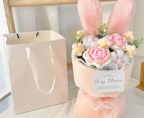 바른리빙 토끼 뜨개 인형 꽃다발 졸업식 발표회 꽃다발, 핑크, 1개
