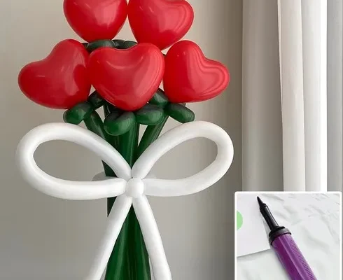 DIY 요술풍선 하트 레드 꽃다발 + 손펌프 by 파티아일랜드, 레드 하트 꽃다발 + 손펌프