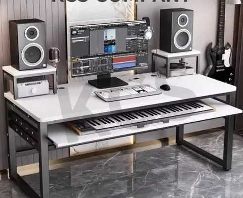 미디데스크 건반 피아노 오르간 테이블 전자 음악 작업용 원목 조립식 뮤지션 책상 녹음, 화이트160cm