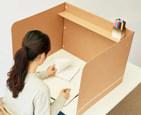 공부집중 칸막이 상단선반형 독서실책상, 종이색